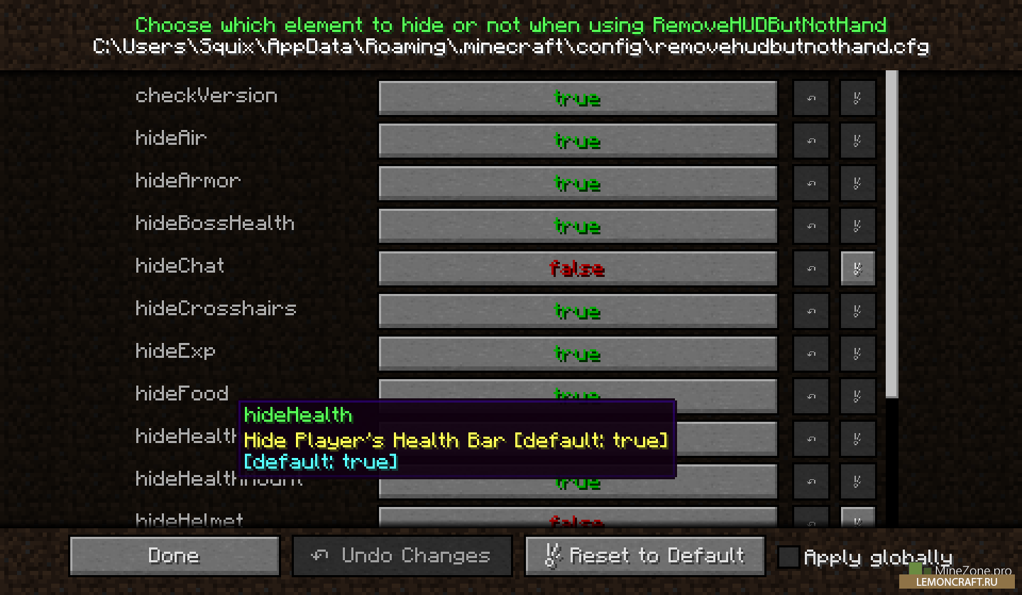 Мод на скрытие интерфейса игры Remove HUD but Not Hand [1.12.2] [1.10.2] [1.9.4]